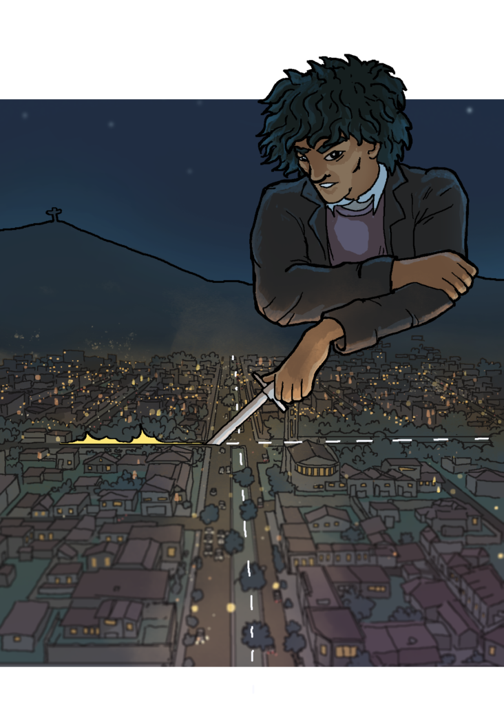 –El vecindario no tiene nombre; está arriba del barrio de Santa Colonia.– El extranjero miró hacia arriba y señaló hacia el noreste. –Vivo en un predio, allá en ese lado de la montaña, arriba de nuestra casa no hay nada, no hay más casas.–