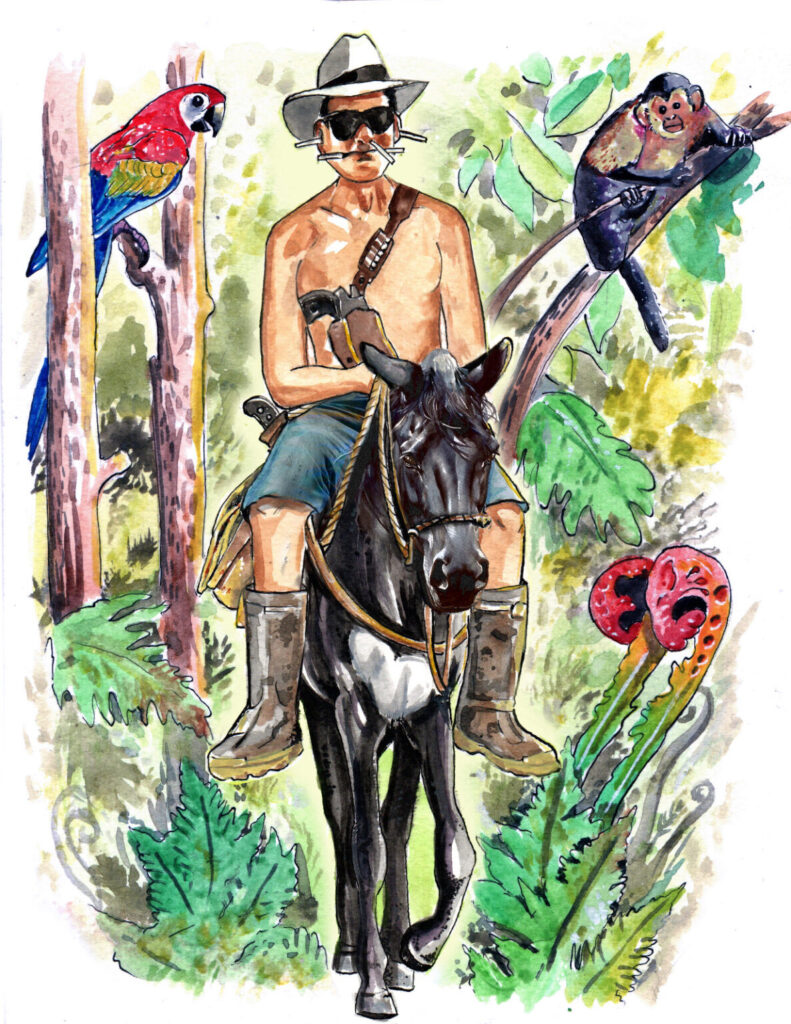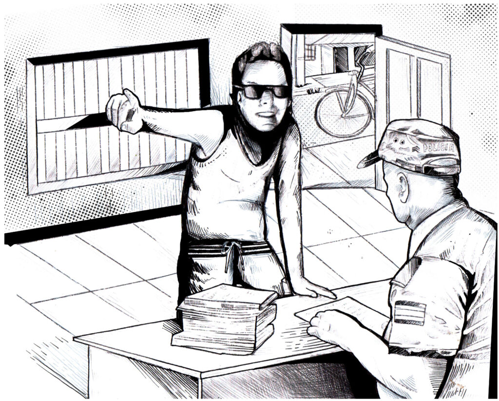 Corporal Tejeda was the tallest man on the force and was nearly as big around as he was tall. Yet despite his enormity, he moved like a jaguarondi and slipped right up on old Shadow like lightning falling through a cloudless day and before the sarong-ed former commando witch-doctor wannabe got wise, had reached down and pulled the blade out from the scabbard and tossed it across the floor where it skittered beneath the bookshelf. Shadow jumped to his feet to whorl around and I pushed away from the wall to send my office chair rolling across the tile floor and back out of harm’s way and the three officers took Shadow down faster than the collapse of American prestige following its invasion of Iraq and had his head pressed against the floor in no time flat, the big corporal with a knee in the small of Shadow’s back and his wrists wrestled up behind him and pushed upward till he got him a little Special Forces yelp out of the floored shaman-in-waiting, despite his five hundred thirty-two confirmed kills. Officer Silpancho, the one they called Gato Calvón, clicked the bracelets on, and the officers let up a bit and the tension evaporated. It had all gone down quite a bit easier than they had expected, and they eased the foreigner gently to his feet, respectfully now that the danger had passed, and the third officer, a recent rotation in, got down on his hands and knees to reach under the book shelf and fish out the pig sticker. The corporal gestured toward the door to allow the captive to lead the way of his own accord.
