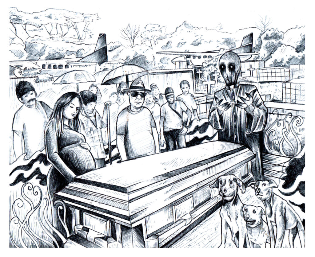 Counting myself and the priest there were eighteen of us in attendance for George’s funeral, which was held under a blazing late morning August sun. Ana Maria was already starting to show with the baby girl that would be born in early January and would be named at George’s dying insistence Mariluna Paz. I was perhaps the only one to roll my eyes at the Catholic service, which Ana Maria had declaimed was essential at a bare minimum for the soul of dear George to have the slightest chance of avoiding eternal damnation, and so the priest was there to guide us in our valley walk. As far as Shadow’s eternal fate, he was to have no such luck; no one appeared from abroad to claim his body and as Apollo settled into the first week of his six-month pre-trial preventive-prison term, one Randall Simon was cremated in the Alajuela morgue, his ashes added to the collective heap of the unclaimed, mourned only by three mongrels that finally broke ranks in paradise to seek their troubled fortunes on individual merits.